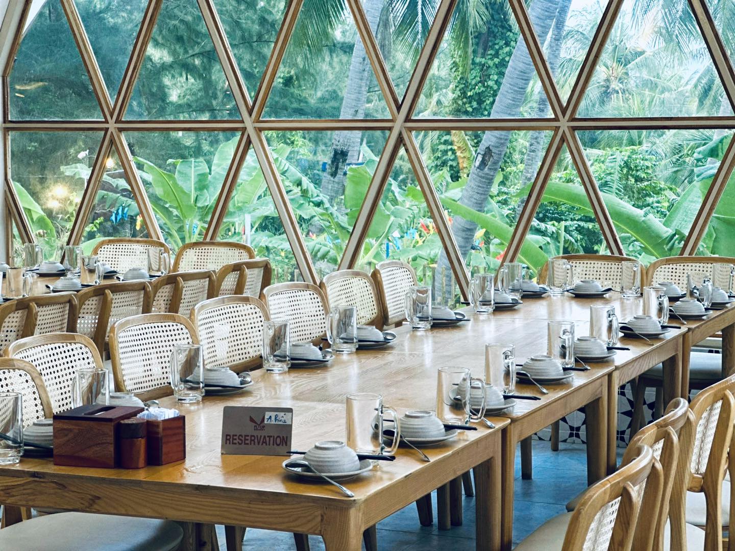 - Bữa ăn ngoài trời: Ngoài phòng ăn bên trong, bạn còn có sân ngoài trời cho bạn lựa chọn. Đây là nơi lý tưởng để thưởng thức bữa ăn dưới ánh đèn vào buổi tối, tạo ra không gian lãng mạn và thú vị. Bạn có thể thưởng thức bữa ăn trên bãi cát với gió biển mát mẻ làm bạn thư giãn và cảm nhận mùi hương của biển.