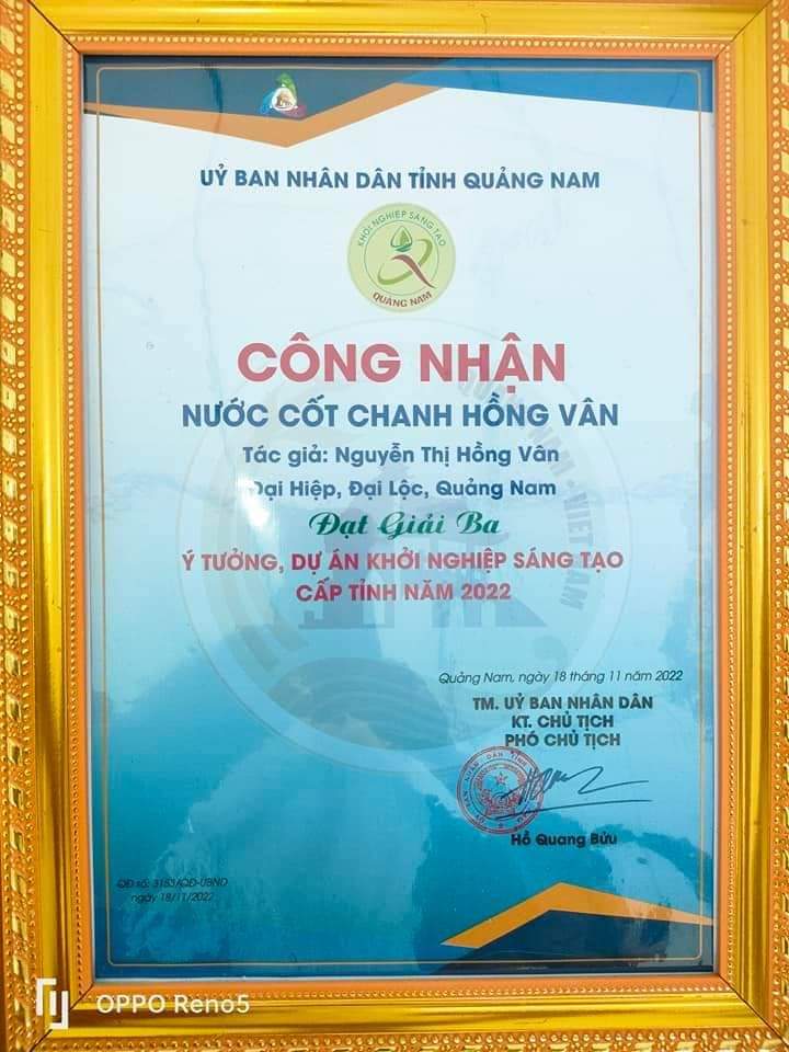 Hưởng ứng chương trình Quốc gia Mỗi xã một sản phẩm - OCOP, cùng với sự quan tâm của các cơ quan ban ngành địa và sự nỗ lực không ngừng của đơn vị, ngày 29 tháng 12 năm 2022, Sản phẩm Nước Cốt Chanh Hồng Vân vinh dự đạt hạng Sản phẩm OCOP 4 sao cấp tỉnh.