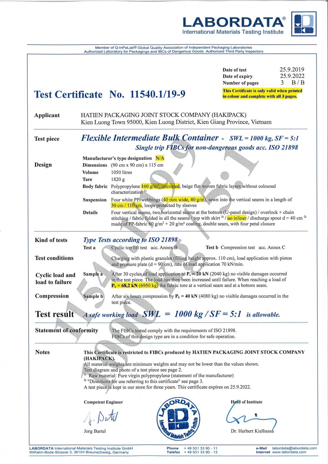 - Tập trung xây dựng hình ảnh là một nhà sản xuất bao Big bag chuyên nghiệp, có năng lực lớn. Với hệ thống quản lý chất lượng theo tiêu chuẩn ISO 9001:20015 và ISO 14001:2015.