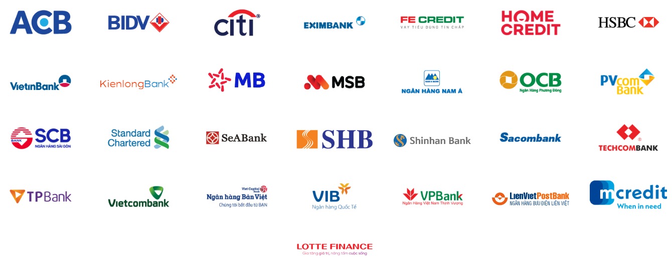 Chương trình trả góp 0% lãi suất được liên kết với 28 ngân hàng giúp việc bán hàng dễ dàng.