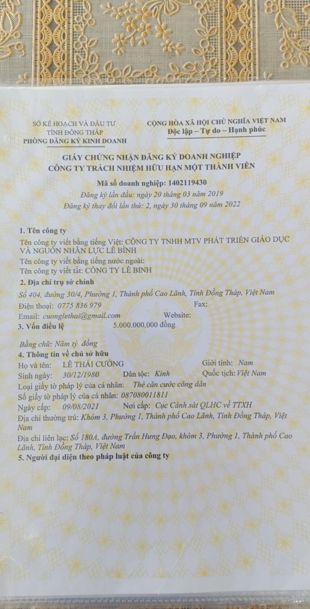 Cre: Công Ty TNHH MTV Phát Triển Giáo Dục Và Nguồn Nhân Lực LÊ BÌNH