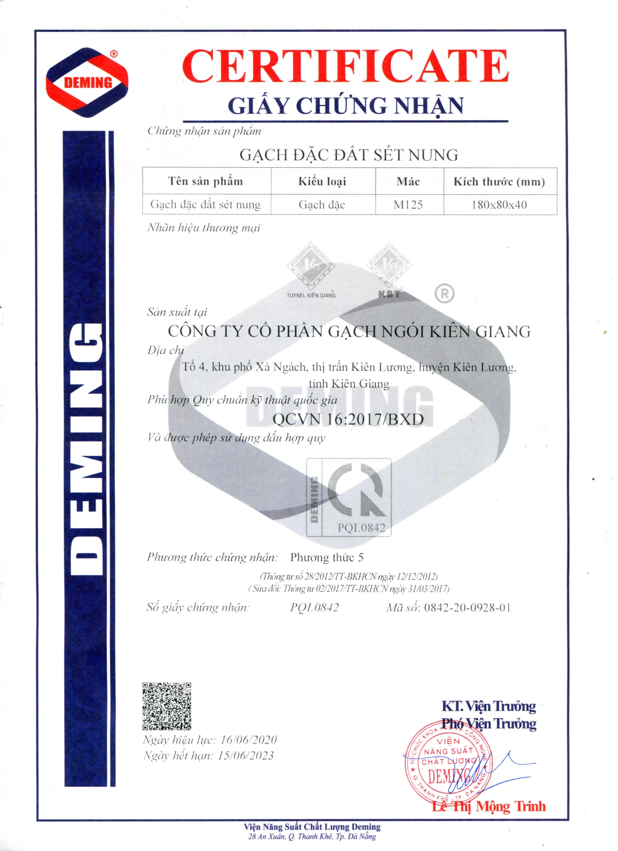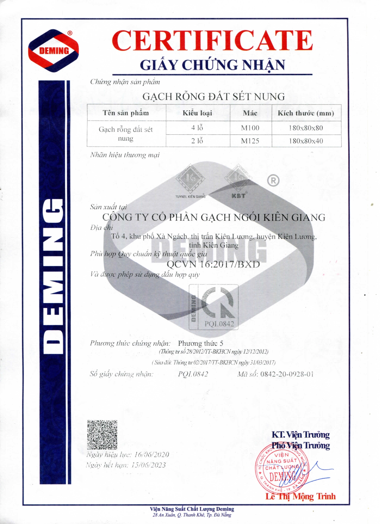Công ty CP Gạch Ngói Kiên Giang chuyên sản xuất gạch xây dựng bằng công nghệ lò nung Tuynel. Công suất thiết kế ban đầu của nhà máy là 25 triệu viên/năm, tháng 08 năm 2013 công ty đã đưa dây chuyền 2 vào hoạt động nâng tổng công suất thiết kế lên 60 triệu viên/năm.