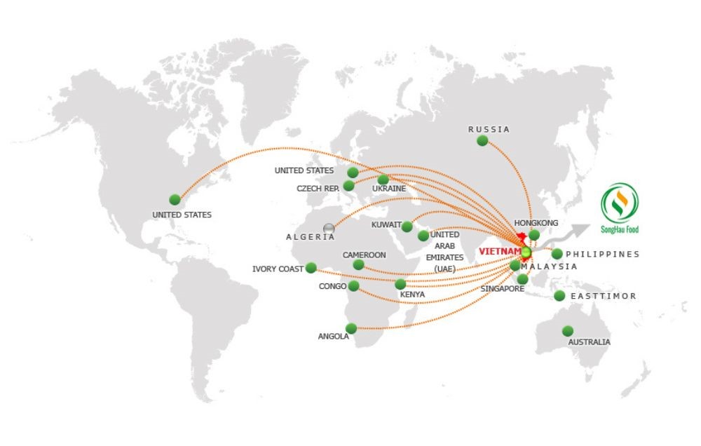 Hiện nay, sản phẩm gạo của Công ty Lương thực Sông Hậu đã có mặt tại 31 quốc gia trên nhiều châu lục như Châu Âu, Châu Á, Châu Phi, Châu Úc và Châu Mỹ. Điều này cho thấy tầm nhìn và nỗ lực của công ty trong việc mở rộng thị trường xuất khẩu và khẳng định chất lượng gạo Việt Nam trên sân khấu quốc tế.