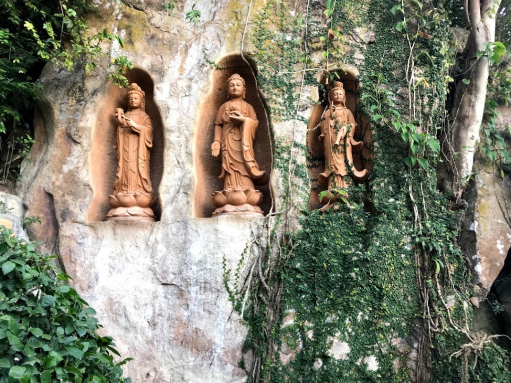 Vị nữ tu ngày ấy chính là Ni sư Thích nữ Diệu Thiện, thiện nam tín nữ, Phật tử gần xa thường gọi Ni sư là Sư bà Thợ chùa Hang. Vì nơi này có những hang động như: hang Bạch Hổ, hang Thanh Xà, Bạch Xà. Hang Bạch Hổ ngày nay đã trở thành hang Vạn Phật, hang Thanh Xà, Bạch Xà là nơi Sư Bà ở ẩn tu, cũng chính nơi này Sư Bà cảm hoá quy y cho đôi rắn Thanh xà, Bạch xà.