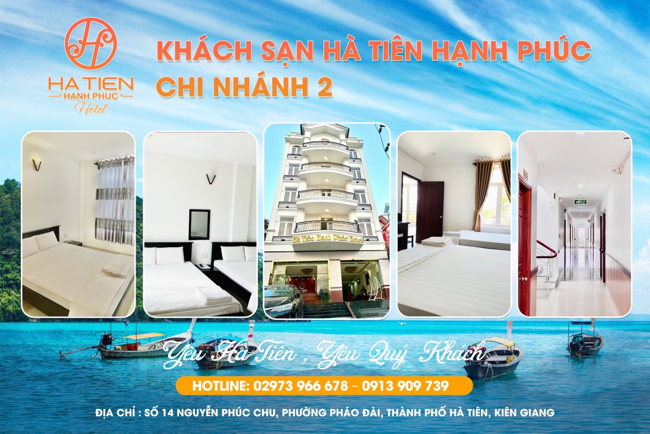 Khách sạn Hà Tiên Hạnh Phúc tọa lạc gần chợ, trung tâm thương mại Hà Tiên, gồm 22 phòng với kiến trúc đẹp, sang trọng, tiện nghi, sạch sẽ thoáng mát, giá cả hợp lý, có chỗ đậu xe rộng rãi, an toàn.