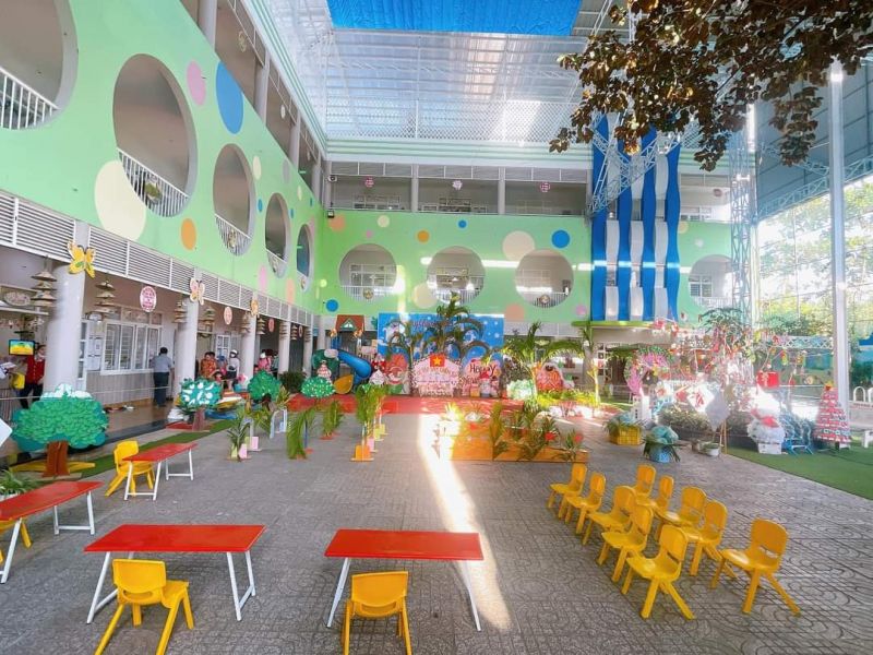 Trẻ được chăm sóc và học tập trong một không gian xanh, sạch, đẹp. Môi trường thân thiện, thoáng mát, gần gũi với thiên nhiên.