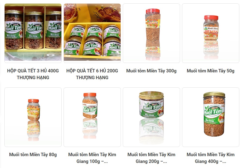 Muối tôm Miền Tây Kim Giang được làm từ muối, tôm, tép, tỏi, ớt, đường, hạt nêm với mùi thơm đặc trưng và hương vị đậm đà, muối tôm thích hợp cho mọi lứa tuổi. Dùng để chấm với các loại trái cây như: xoài, ổi, mận, bưởi, chấm hải sản,...Bên cạnh đó, muối tôm còn dùng làm gia vị để nêm các món ăn chiên, xào, nướng,...phù hợp với khẩu vị người tiêu dùng.