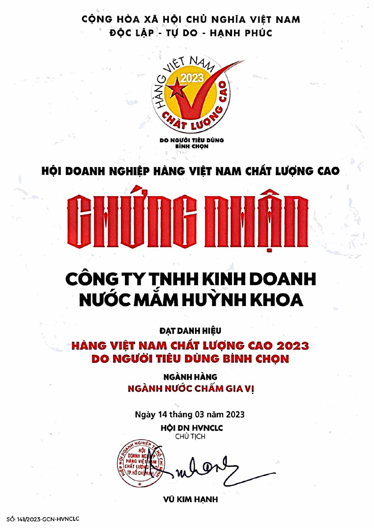Chúng tôi tin rằng, sức khỏe là vốn quý nhất của mỗi người. Giá trị cốt lõi của chúng tôi là làm thế nào để nước mắm và các sản phẩm từ mắm đến tay người tiêu dùng – những người chúng tôi gọi là đồng bào – phải hoàn toàn tự nhiên, thơm ngon đậm đà và tuyệt đối an toàn. Huỳnh Khoa sẽ là người bạn tin cậy của bạn trong mỗi bữa ăn và cùng quý khách nâng niu sức khỏe và những giá trị truyền thống. Chúng tôi luôn ý thức, cam kết và nỗ lực phấn đấu vì sứ mệnh đó.