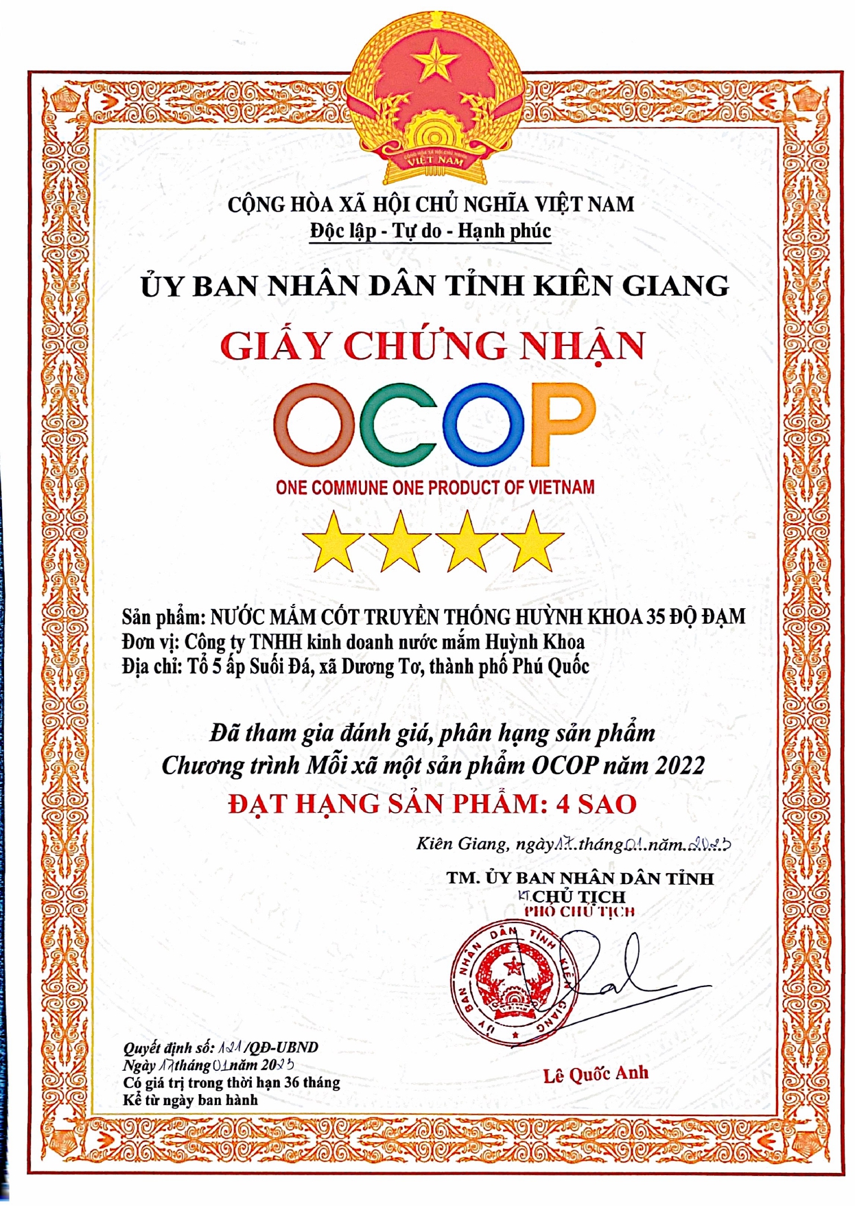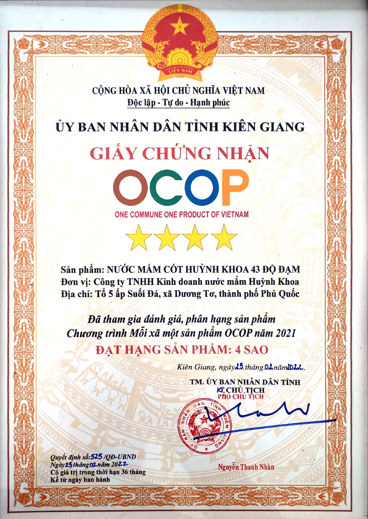 LNV - Nước mắm truyền thống Phú Quốc Huỳnh Khoa, sản phẩm truyền thống trăm năm được bảo hộ chỉ dẫn địa lý của Liên Minh Châu Âu – EU và 28 nước Châu Âu với bề dày lịch sử của Làng Nghề Truyền Thống hơn 200 năm. Nước mắm Phú Quốc Huỳnh Khoa là loại nước mắm không chỉ nổi tiếng tại Việt Nam mà còn được biết đến ở khắp nơi trên thế giới. “Vị ngon đến từ Đảo ngọc” đã tạo nên một nét đẹp văn hóa trong ẩm thực vô cùng ấn tượng trong mắt khách du lịch.