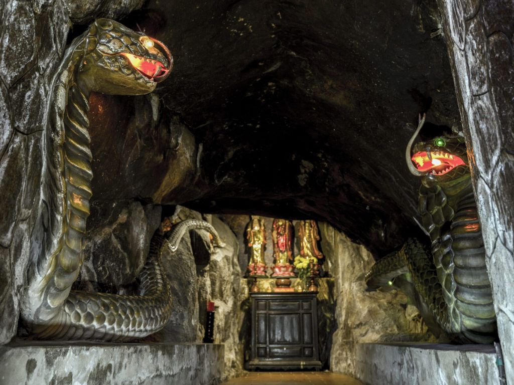Vị nữ tu ngày ấy chính là Ni sư Thích nữ Diệu Thiện, thiện nam tín nữ, Phật tử gần xa thường gọi Ni sư là Sư bà Thợ chùa Hang. Vì nơi này có những hang động như: hang Bạch Hổ, hang Thanh Xà, Bạch Xà. Hang Bạch Hổ ngày nay đã trở thành hang Vạn Phật, hang Thanh Xà, Bạch Xà là nơi Sư Bà ở ẩn tu, cũng chính nơi này Sư Bà cảm hoá quy y cho đôi rắn Thanh xà, Bạch xà.