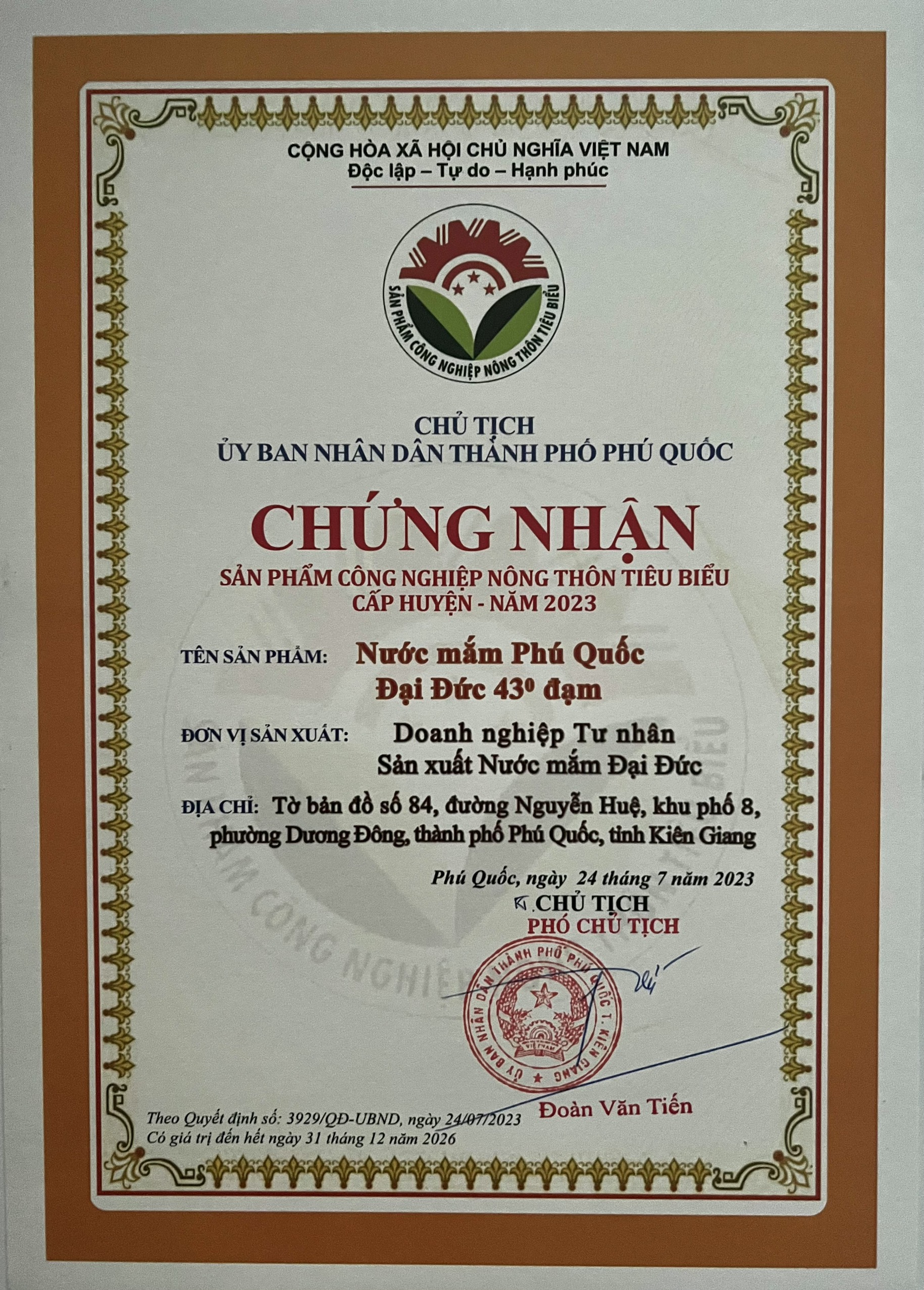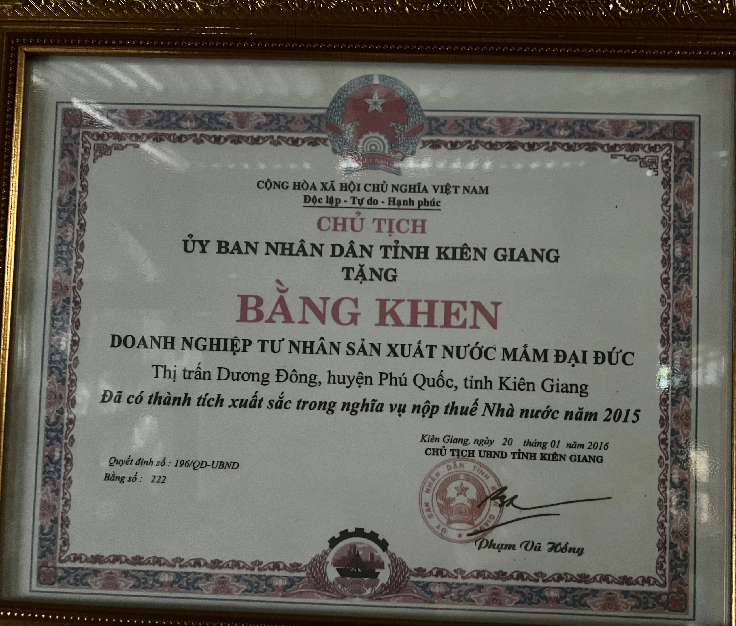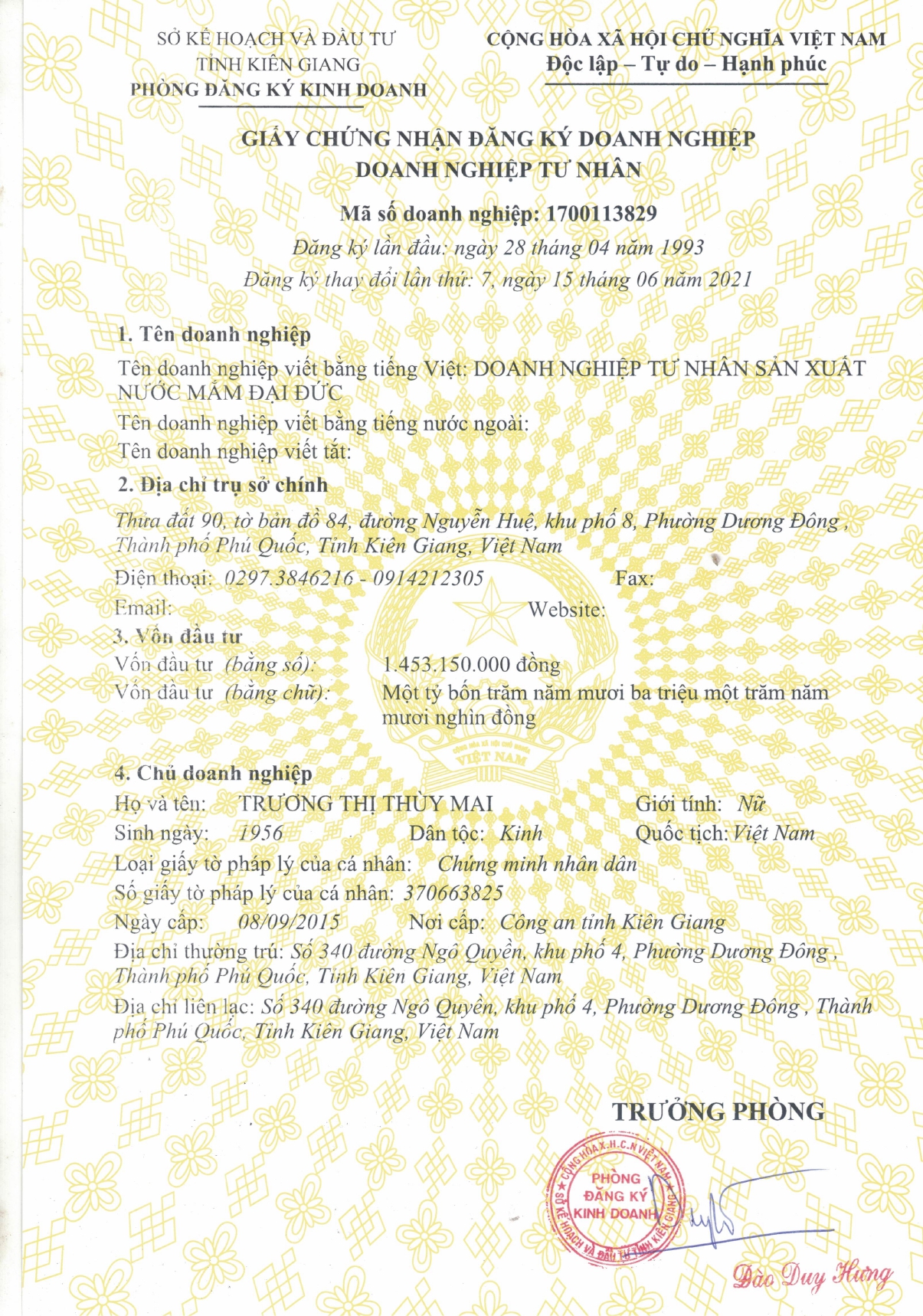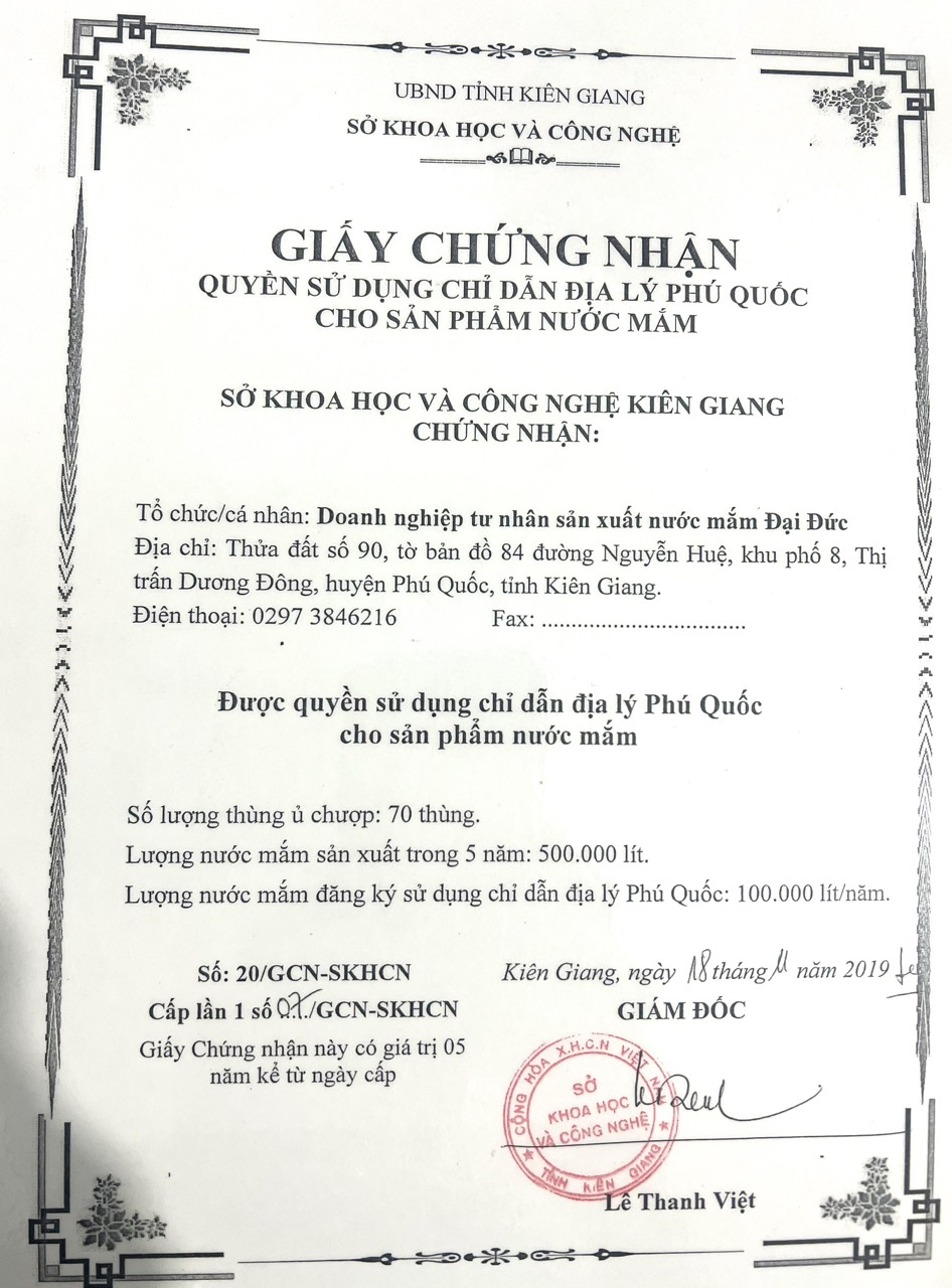 Những năm qua, hãng nước mắm Đại Đức đã không ngừng tích lũy vốn, mở rộng sản xuất, đầu tư mua sắm đội ghe hùng hậu chuyên đi đánh bắt nguyên liệu cá cơm trên vùng biển Phú Quốc – Kiên Giang để tạo ra sản lượng hàng triệu lít nước mắm mỗi năm, đưa đi tiêu thụ khắp trong Nam, ngoài Bắc và xuất khẩu sang nhiều nước trong khu vực và gìn giữ nghề truyền thống của các bậc tiền nhân