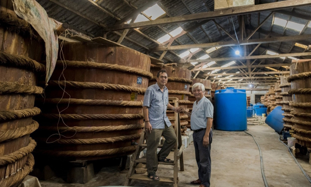 Với hơn 70 thùng gỗ, Nước mắm Đại Đức cho ra loại nước mắm đảm bảo về màu vàng cánh gián mà vẫn giữ được độ thơm ngon.