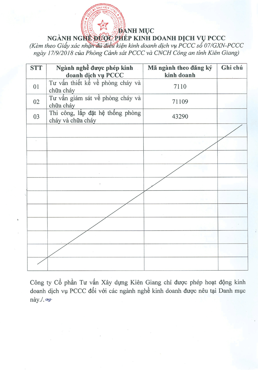 Ngày 15/6/1996 Chủ tịch UBND tỉnh ký Giấy phép thành lập công ty cổ phần số 003347 GP/TLDN-03 với các nội dung: Tên công ty: CÔNG TY CỔ PHẦN TƯ VẤN XÂY DỰNG KIÊN GIANG. Trụ sở: số 19C, Minh Mạng, phường Vĩnh Thanh Vân, thị xã Rạch Giá, tỉnh Kiên Giang.